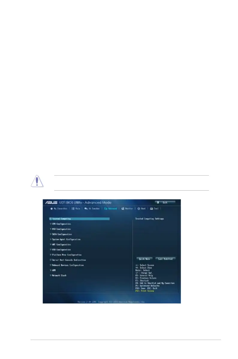 Be cautious when changing the settings of the Advanced menu items. Incorrect eld values