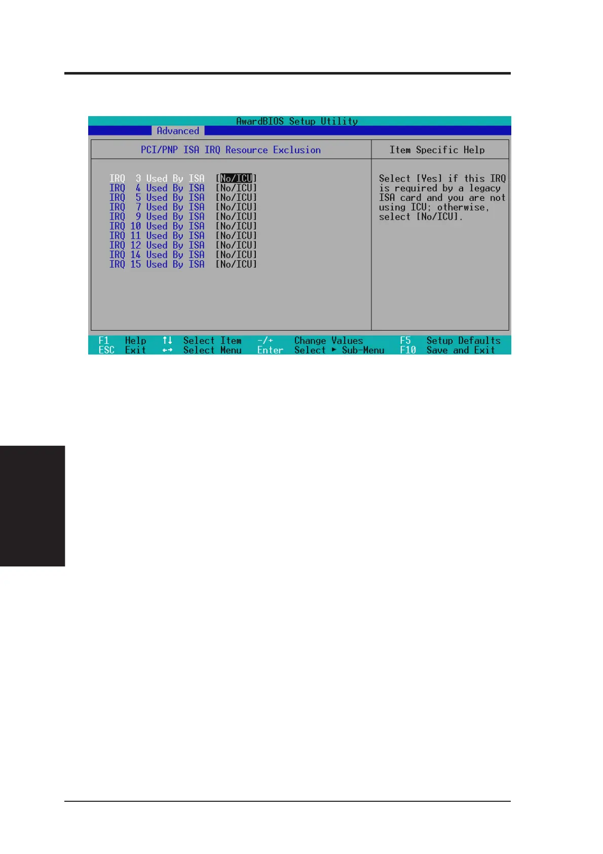 legacy ISA card that requires IRQ 10, then set IRQ10 Used By ISA to