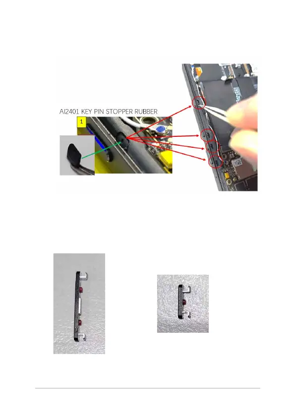 1. Use the tweezers to carefully remove the key pin stopper rubber