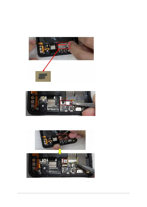 3. Use the tweezers to disconnect the connector after removing the