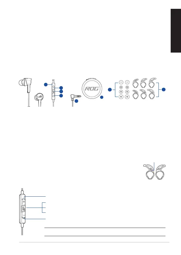 • 3 x 不同尺寸的耳翼 • 1 x 耳機 / 麥克風分離線