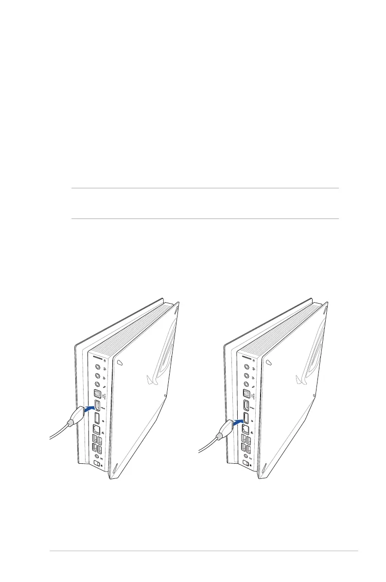 Connect a display cable either to the HDMI or DisplayPort port.