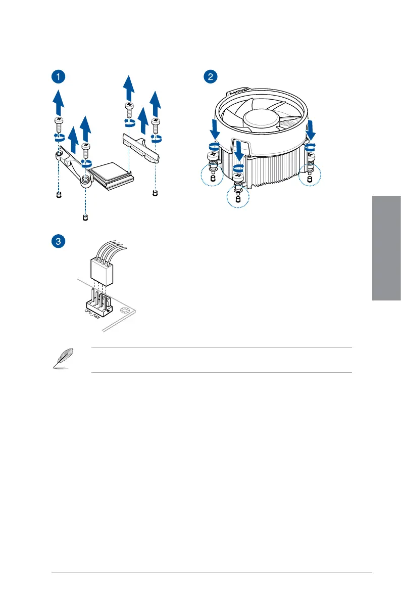 When using this type of CPU fan, remove the screws and the retention module only. Do not