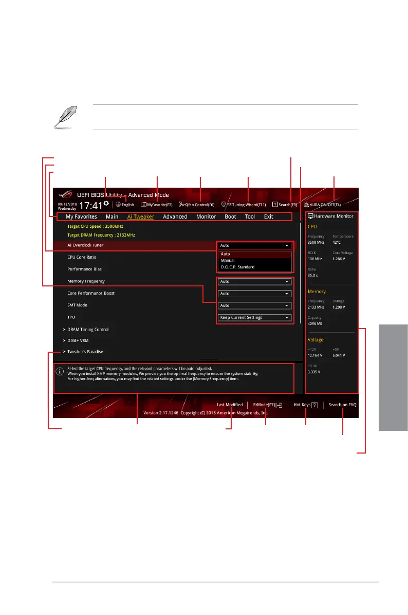 the BIOS settings. The gure below shows an example of the Advanced Mode. Refer to the