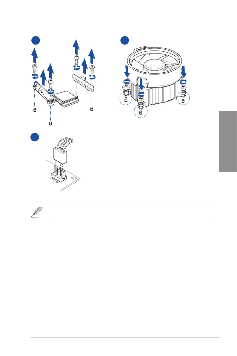 When using this type of CPU fan, remove the screws and the retention module only. Do not