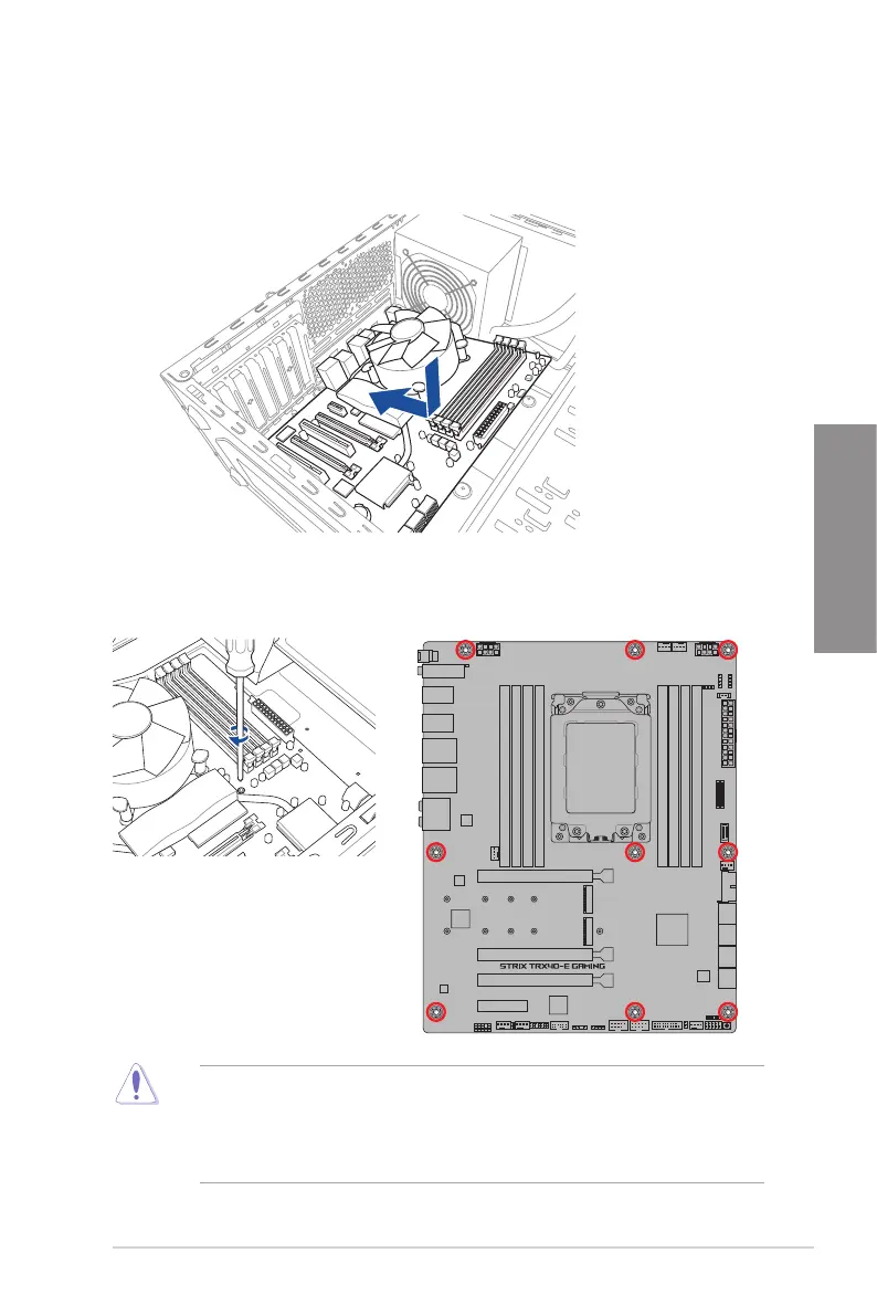 2. Place nine (9) screws into the holes indicated by circles to secure the motherboard to