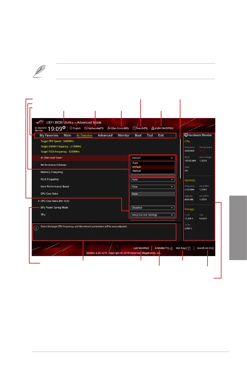the BIOS settings. The gure below shows an example of the Advanced Mode. Refer to the