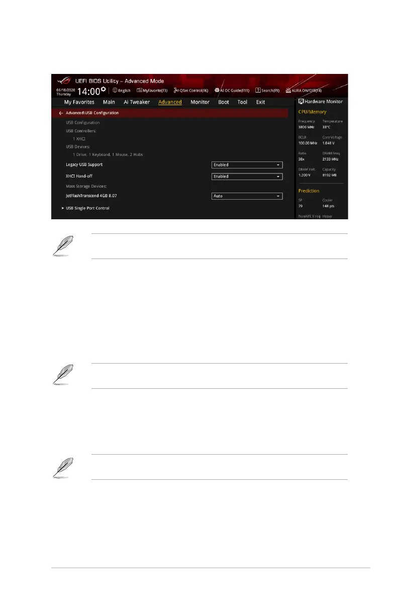 The items in this menu allow you to change the USB-related features.
