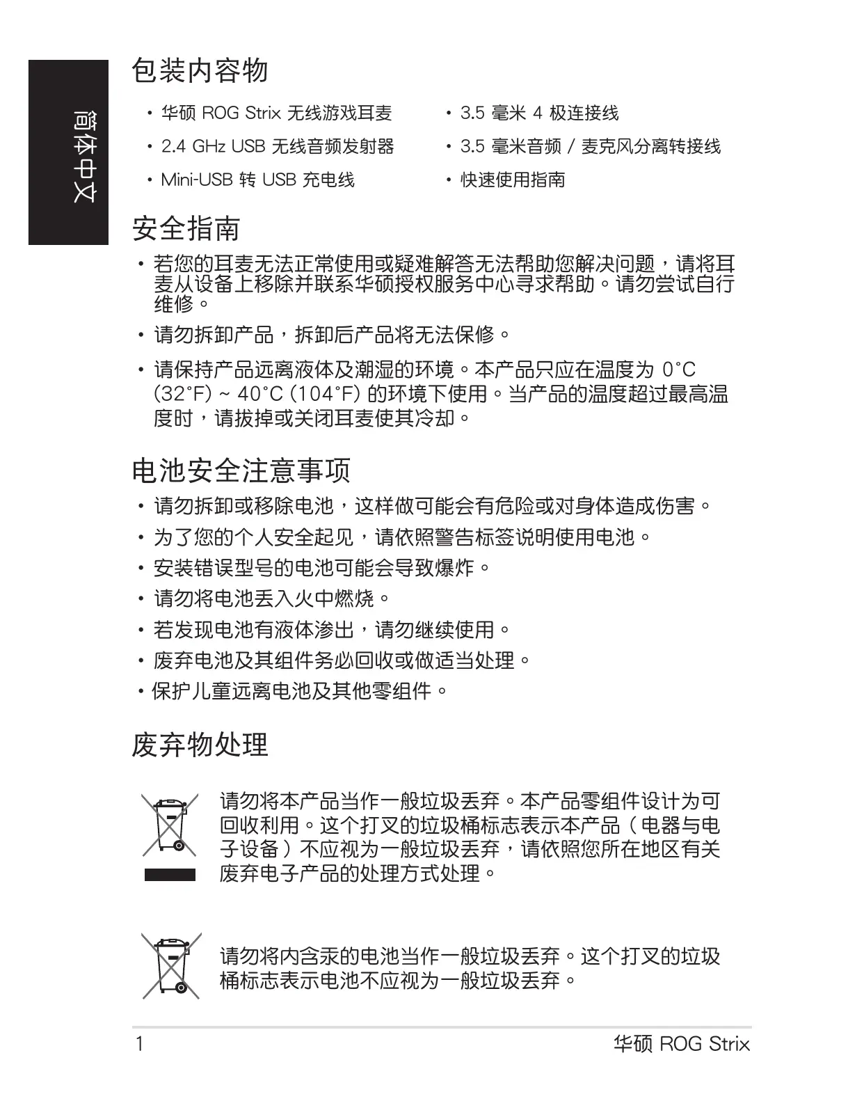 • 華碩 ROG Strix 無線游戲耳麥 • 3.5 毫米 4 極連接線