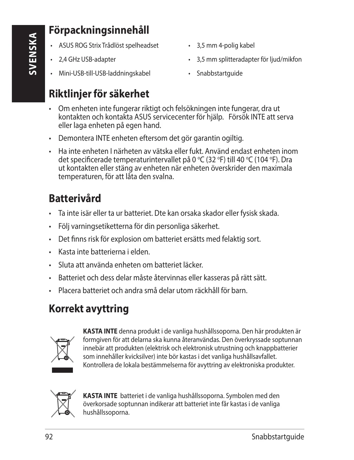 Förpackningsinnehåll