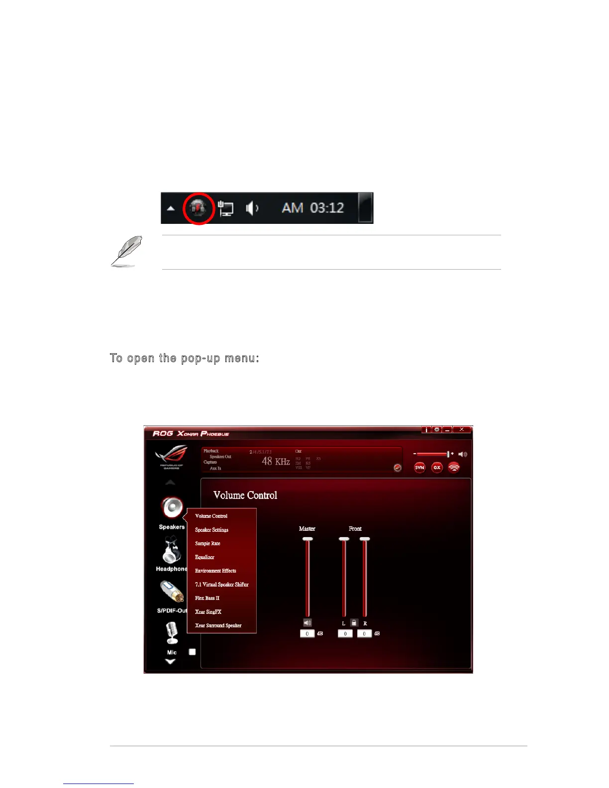 right-hand corner of the screen. Double click this icon to open the Xonar