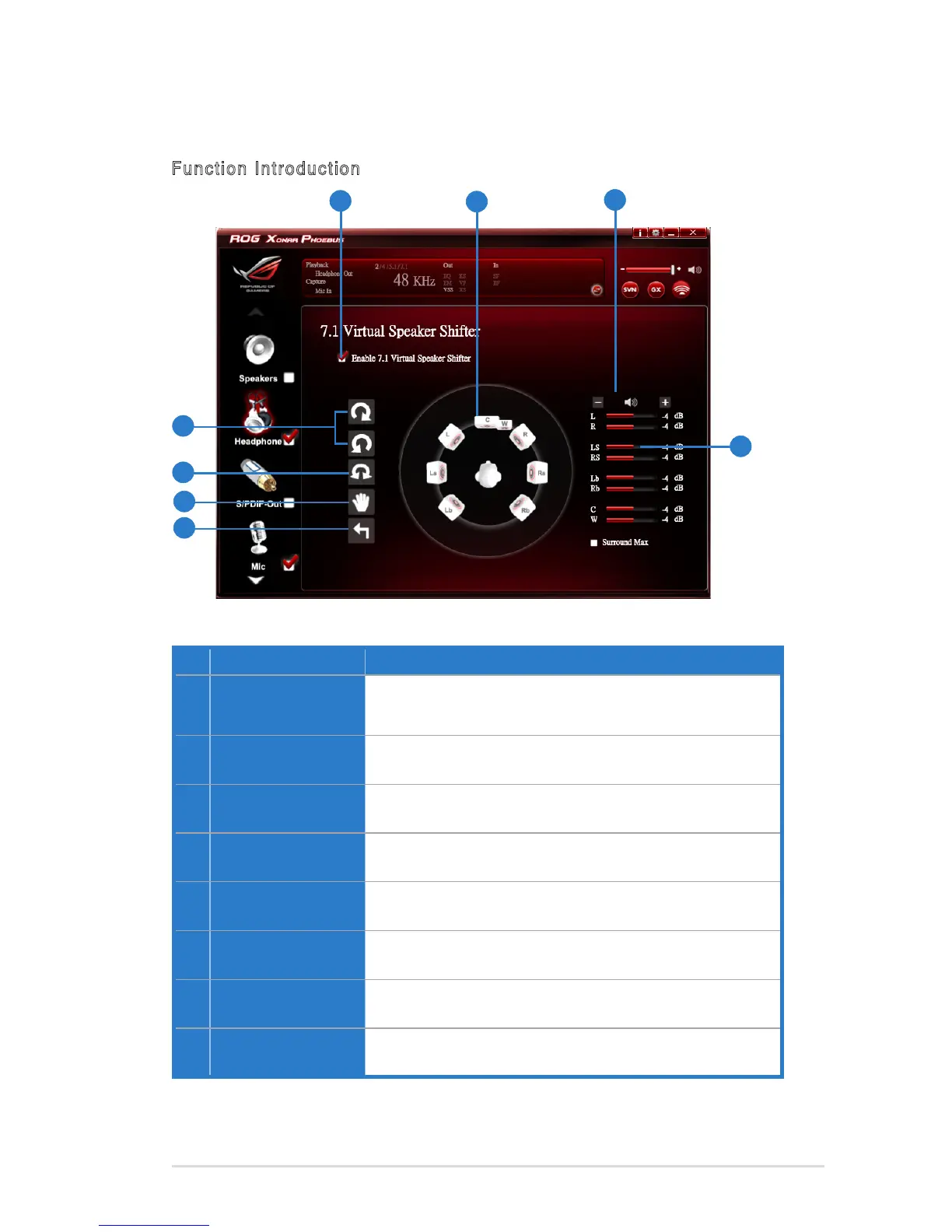 The 7.1 Virtual Speaker simulates the speaker direction and