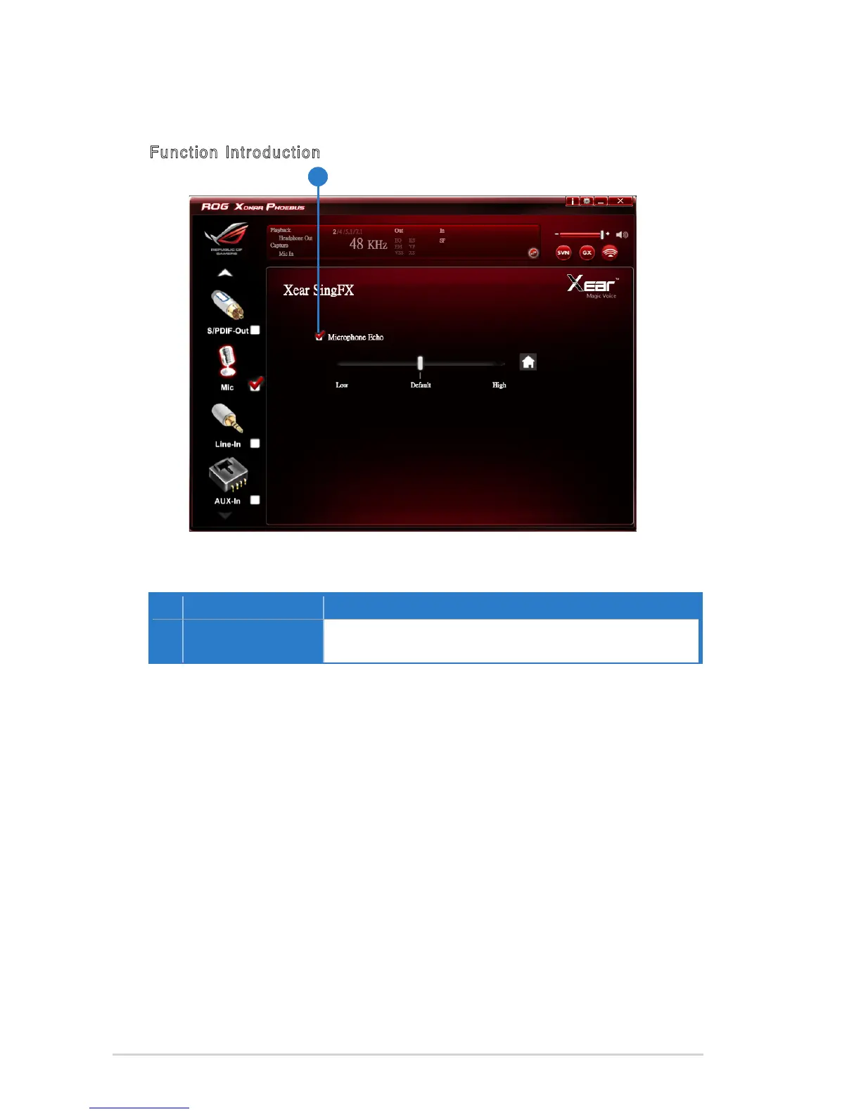 Click the check box to enable / disable the Microphone Echo