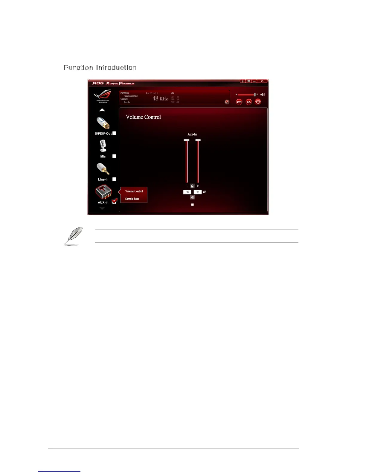 Asus ROG Xonar Phoebus - 6.7 Aux-in Device Function Introduction; 6.7.1 Volume Control