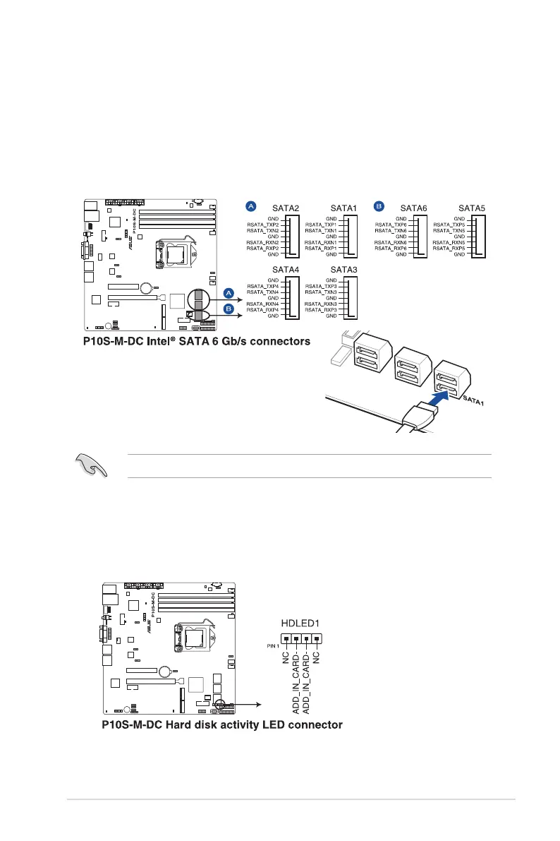1. Serial ATA 6.0 Gbps connectors (7-pin SATA 6Gbps_1-4 connectors [Light Blue];