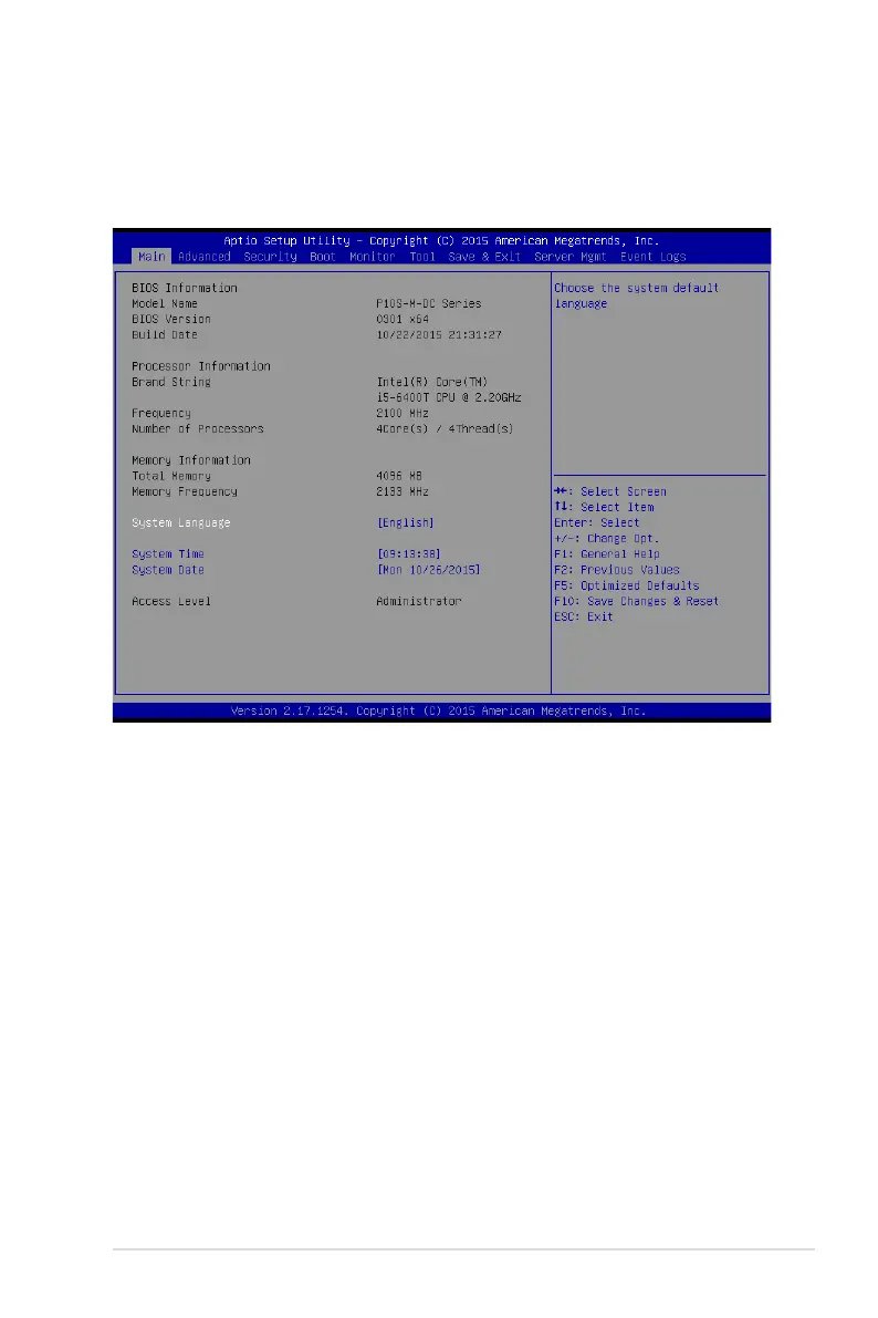 WhenyouentertheBIOSSetupprogram,theMainmenuscreenappears.TheMainmenu