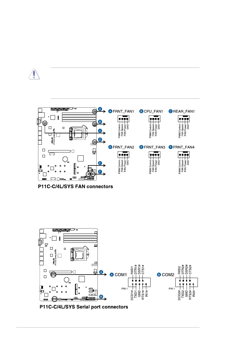 The fan connectors support cooling fans. Connect the fan cables to the fan connectors