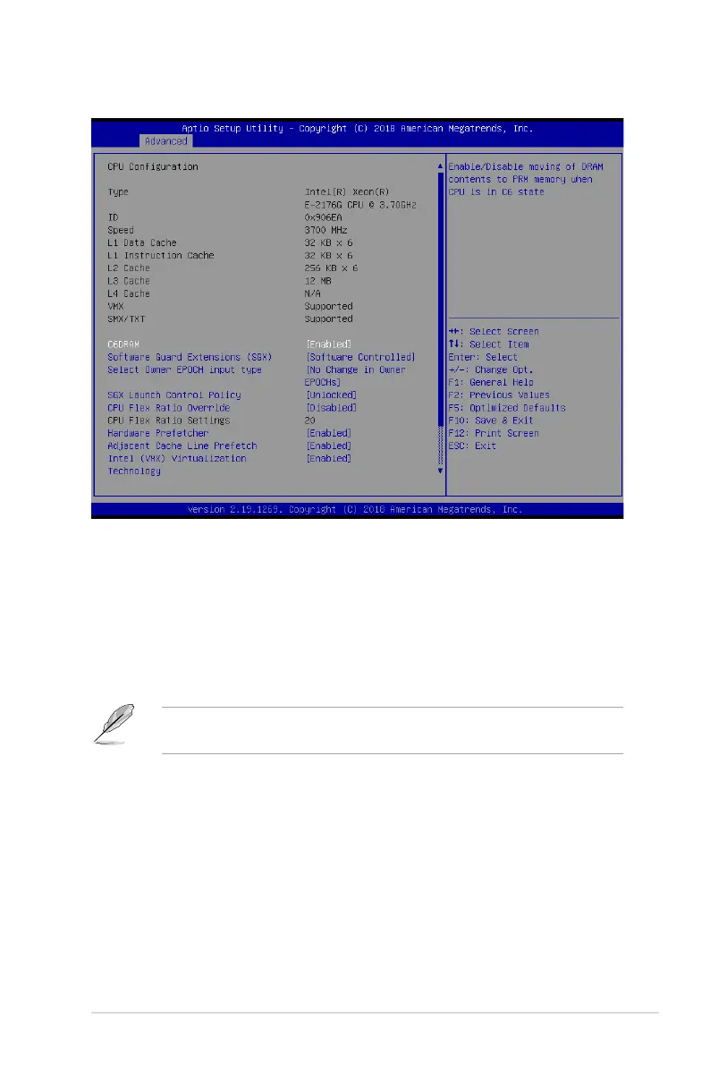 The following item appears only when you set Software Guard Extensions (SGX) to