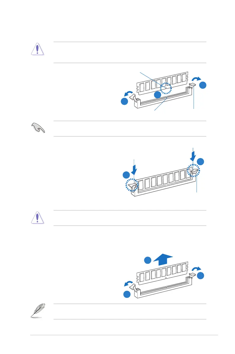 Support the DIMM lightly with your ngers when pressing the retaining clips.