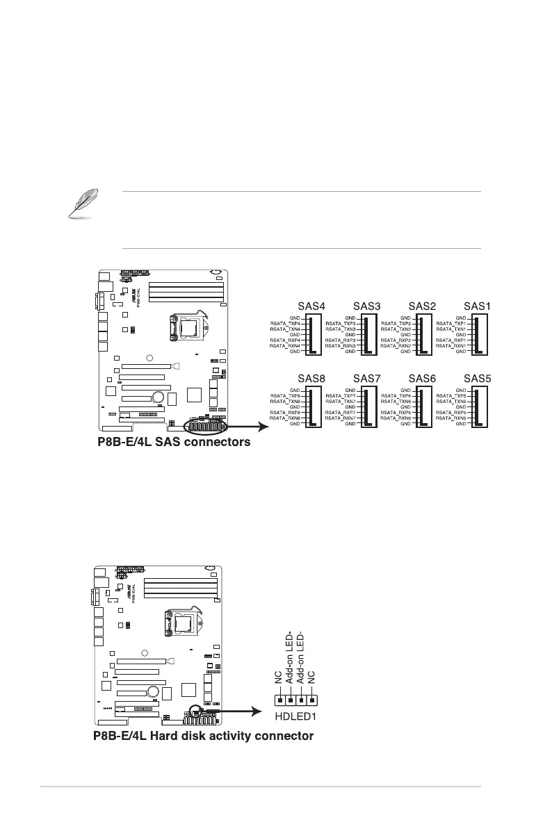• Connect the SAS hard disk drives to SAS connectors 1–4 (blue) when