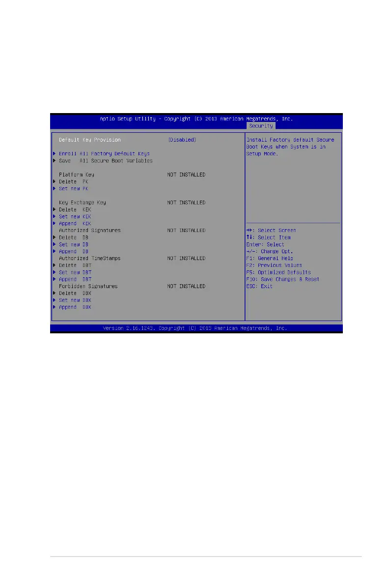 KeyManagementitemallowsyoutomodifySecureBootvariablesandsetKey