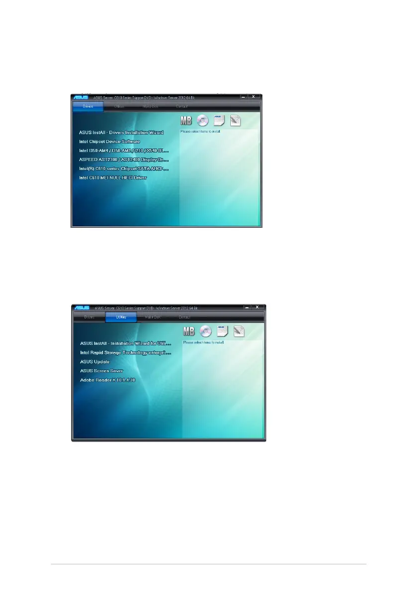 The Utilities menu displays the software applications and utilities that the motherboard supports.