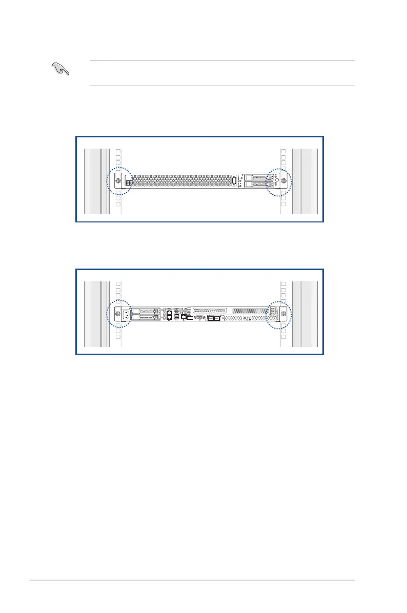 Ensure that the rack rail cabinet and the rack posts are stable and standing rmly on a level