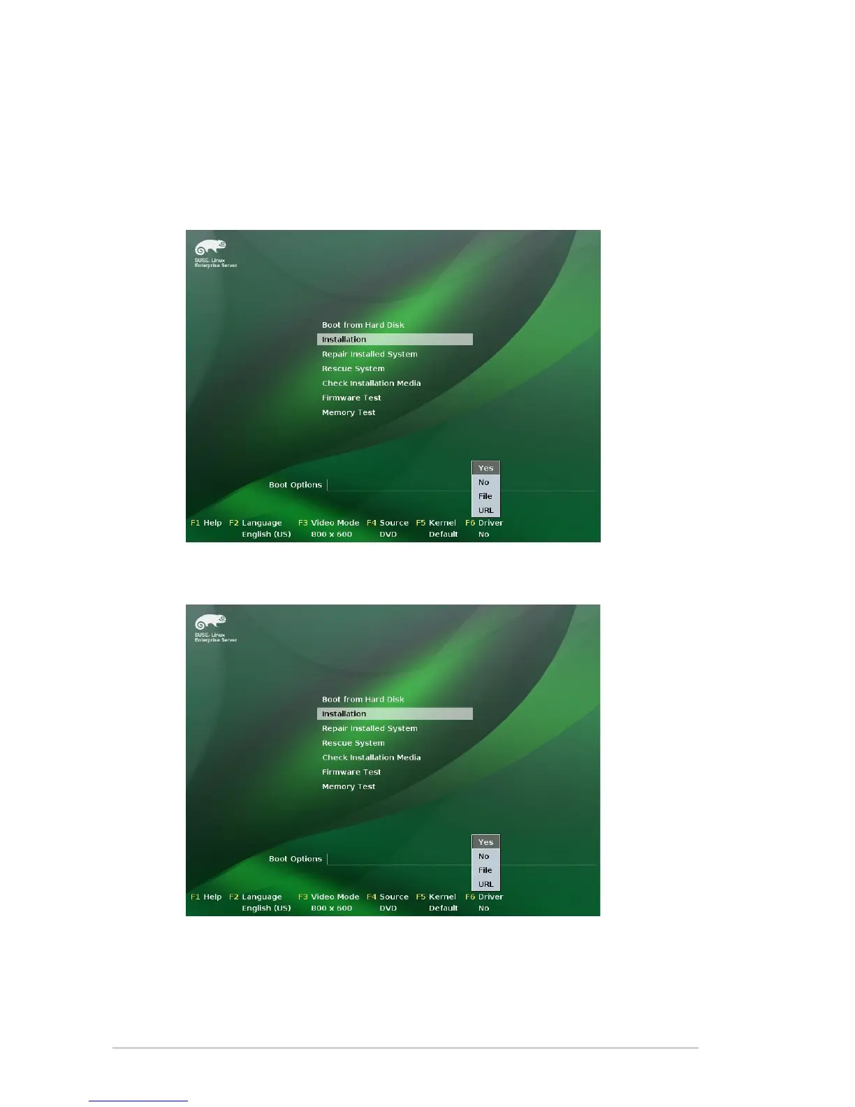 1. Boot the system from the SUSE OS installation CD.