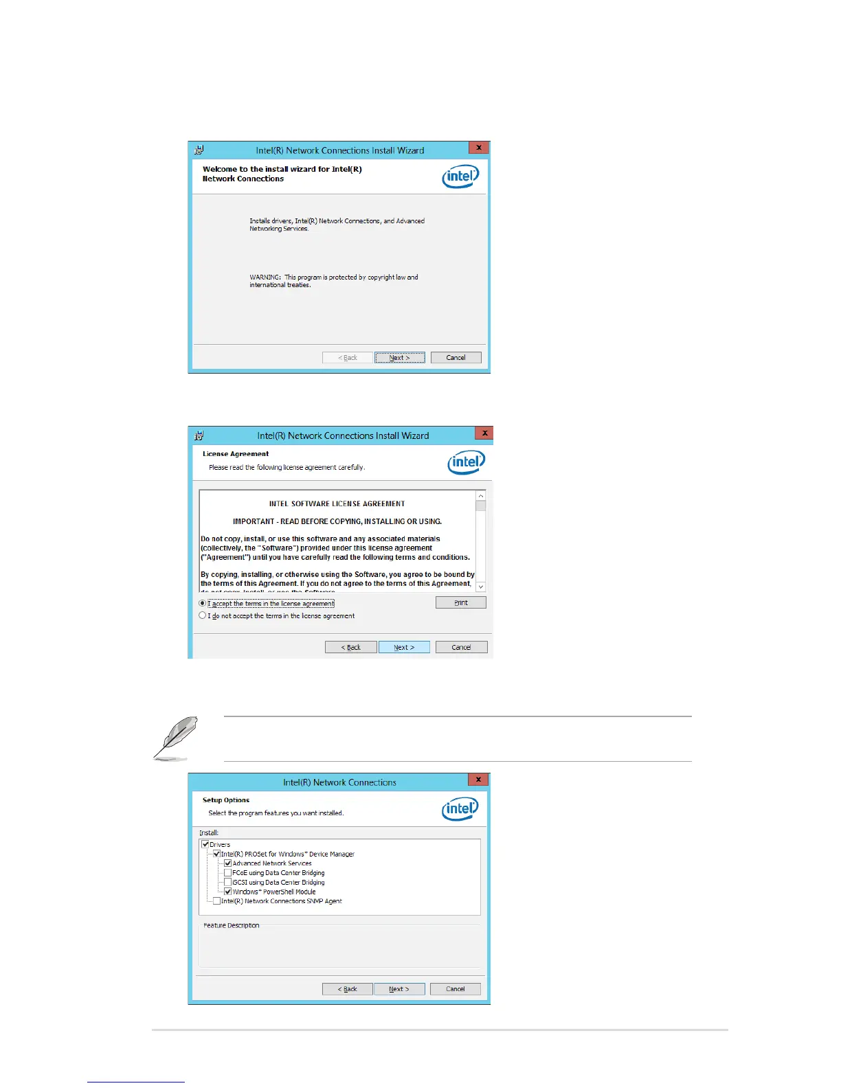 6. Click Next when the Intel(R) Network Connections–InstallShield Wizard window
