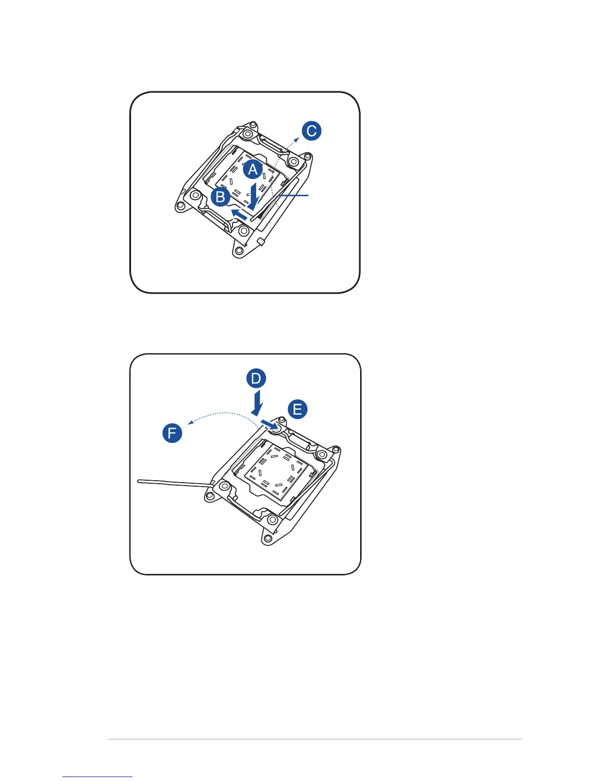5. Press the left load lever (D), move it to the right (E) until it is released from then
