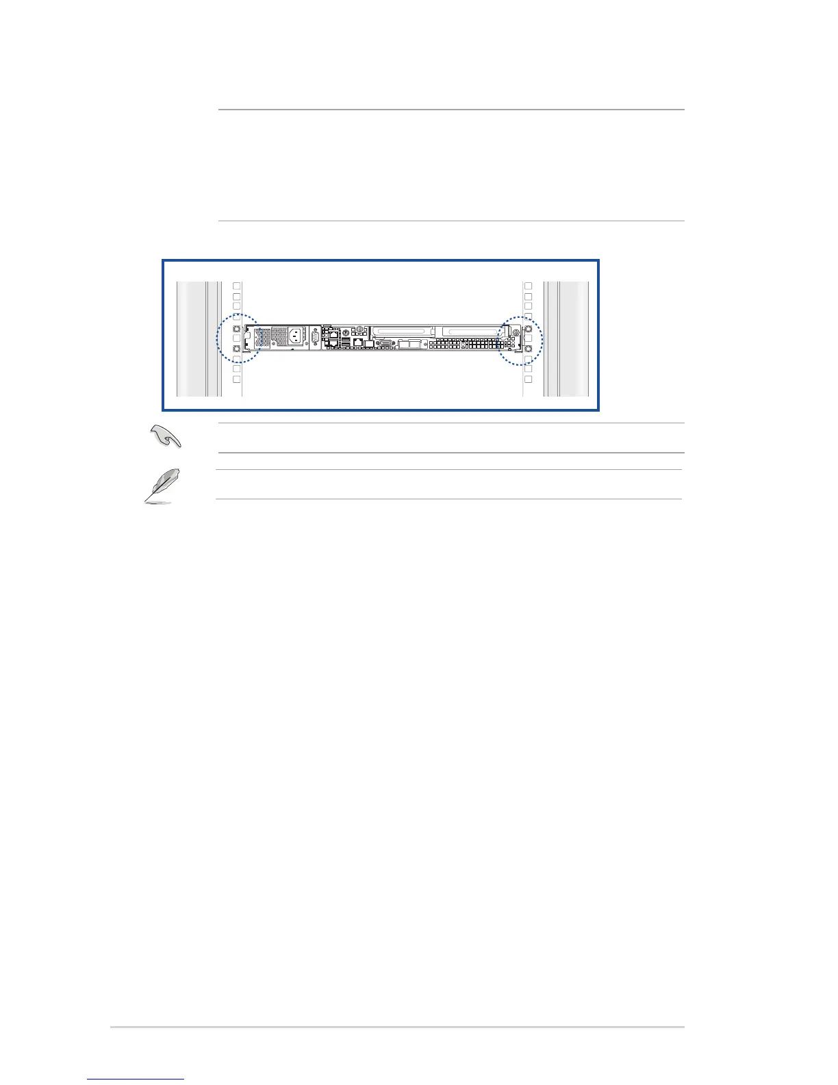 Ensure to include the side knots on the two sides of the server in the rack rail holders.