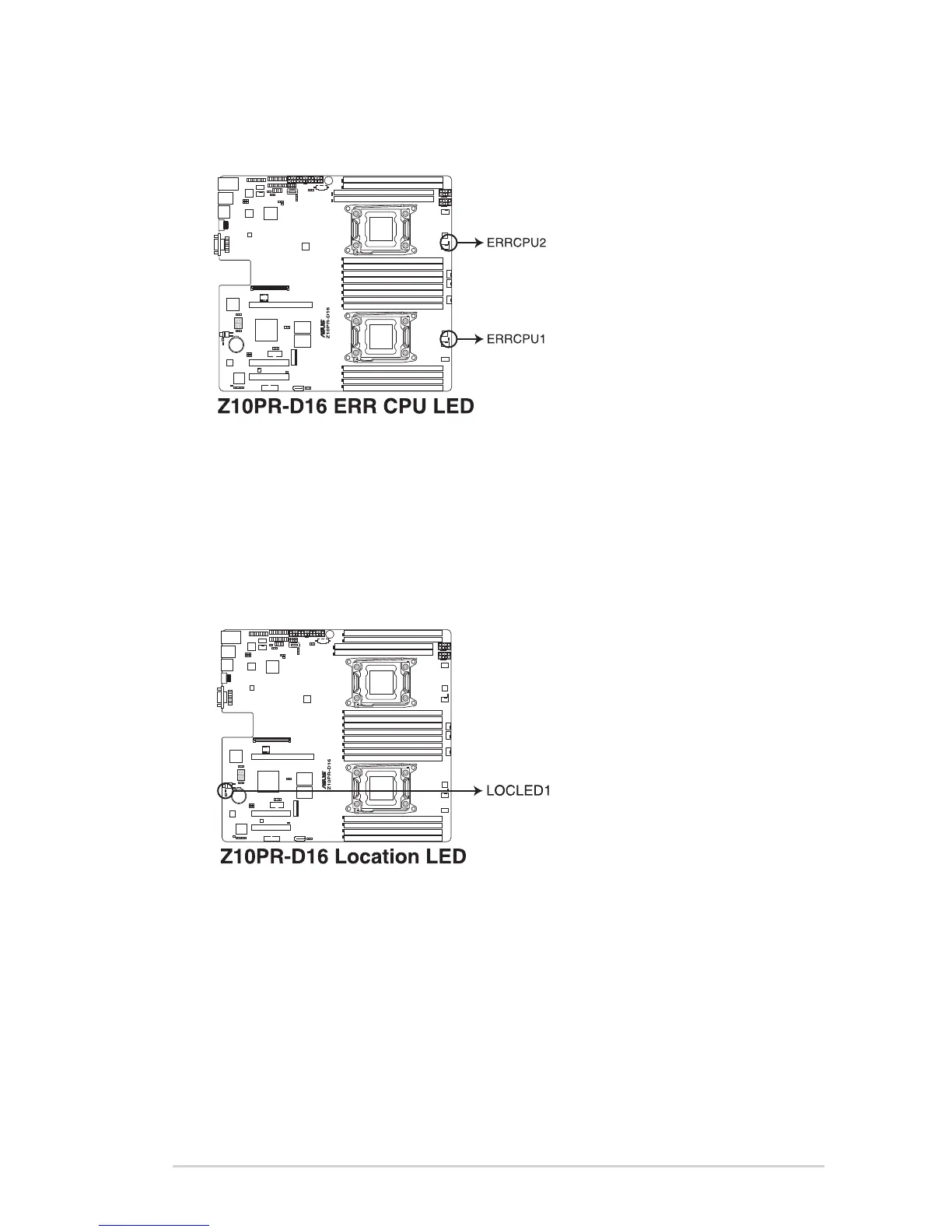 TheCPUwarningLEDslightuptoindicatefailureoneitherCPU1,CPU2,orboth.