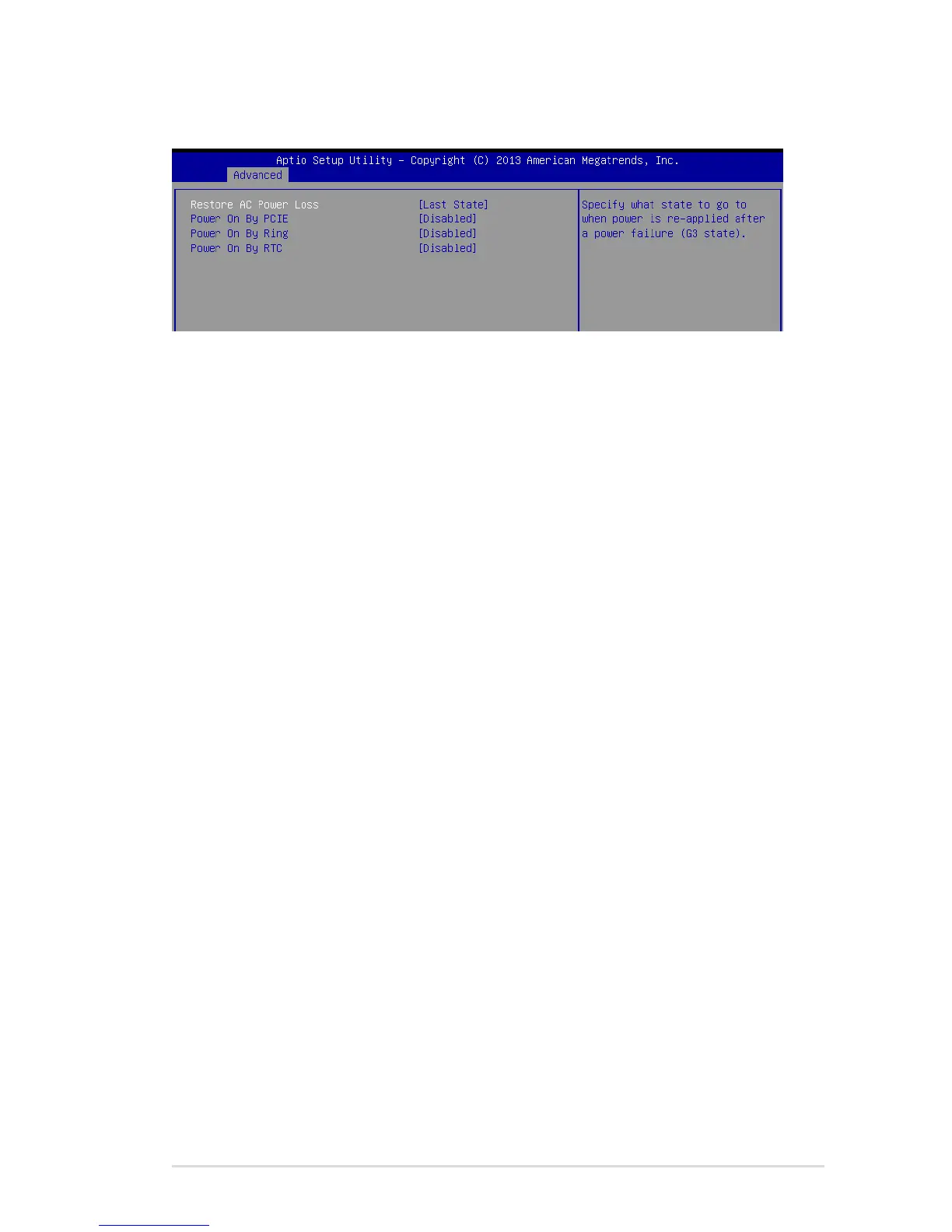 Whensetto[PowerOff],thesystemgoesintooffstateafteranACpowerloss.Whenset