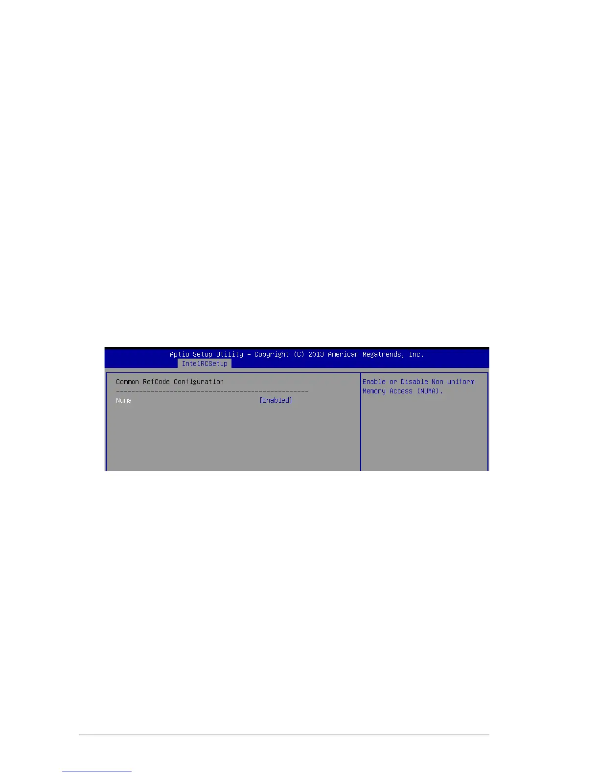 This item enables or disables the Non uniform Memory Access (NUMA).