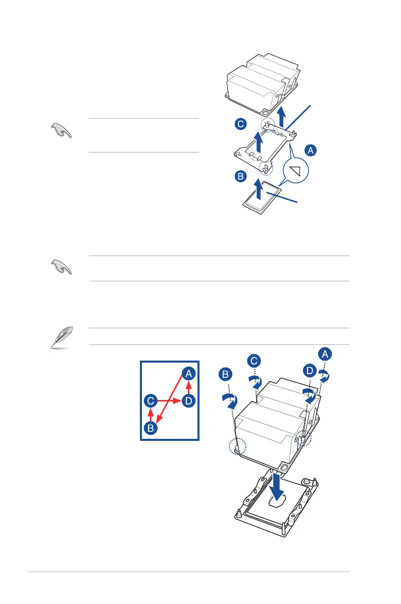 4. Align the CPU and CPU Carrier in the correct orientation, and then place the heatsinks