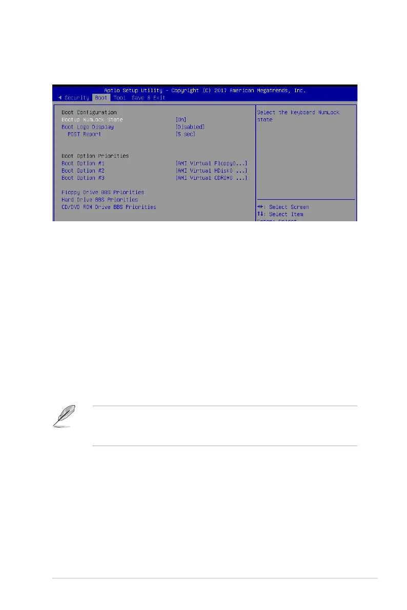 The Boot menu items allow you to change the system boot options.