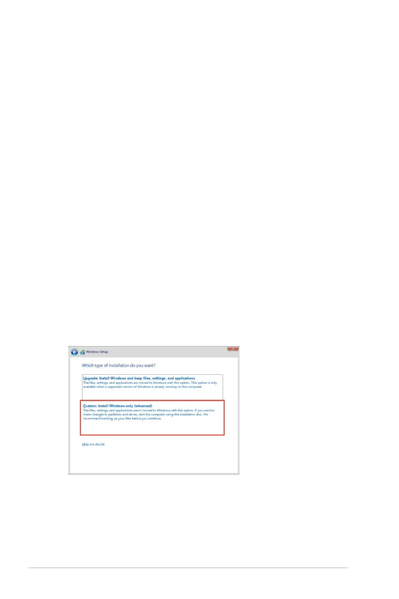 2. When prompted to choose a type of installation, click Custom: Install Windows only