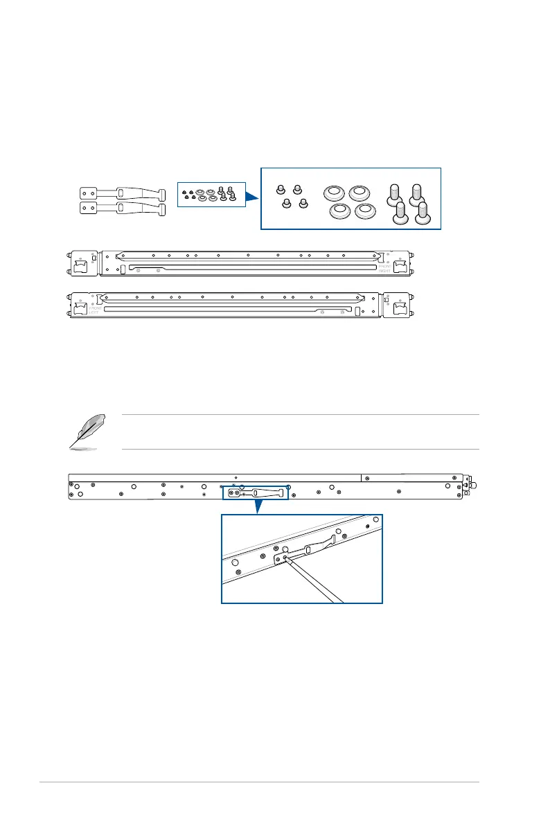 The tool-less rail kit package includes: