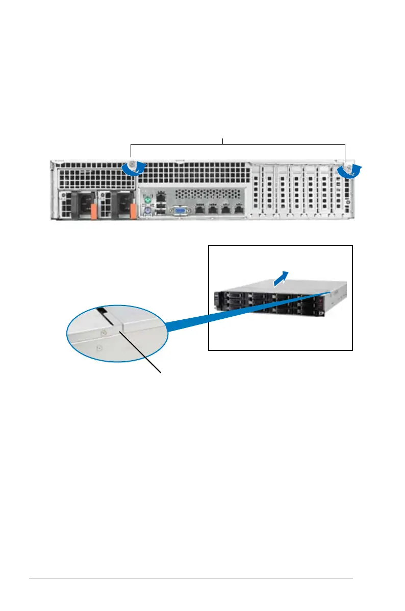 1. Loosen the two thumbscrews on the rear panel to release the rear cover from