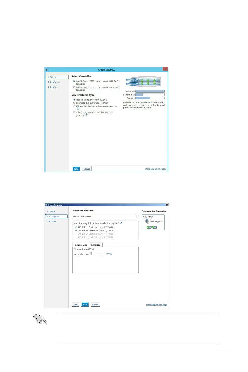 • If you want to Enable volume write-back cache or Initialize volume, click