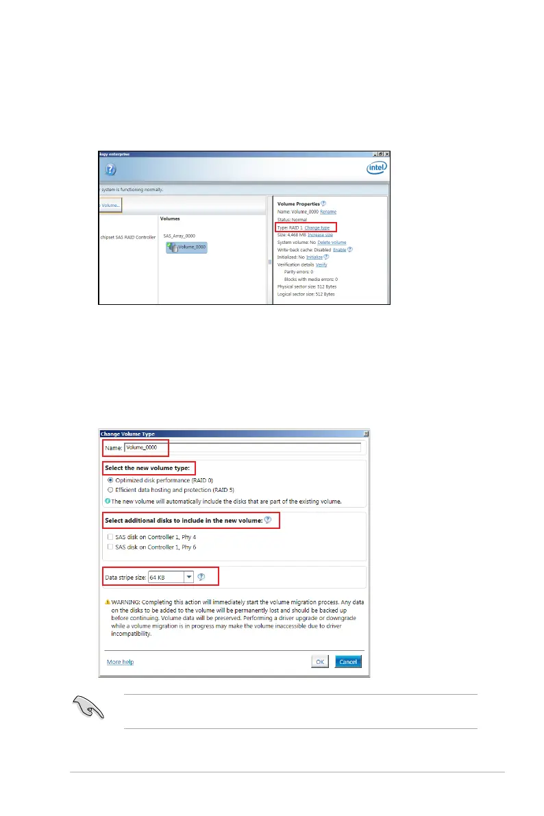 2. From the Volume Properties eld, select Type: RAID 1 Change type.