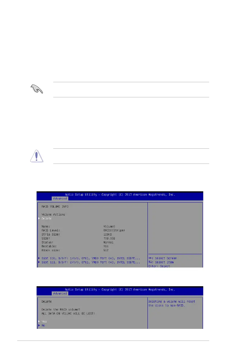 Virtual Raid on CPU menu, select the RAID volume you want to delete