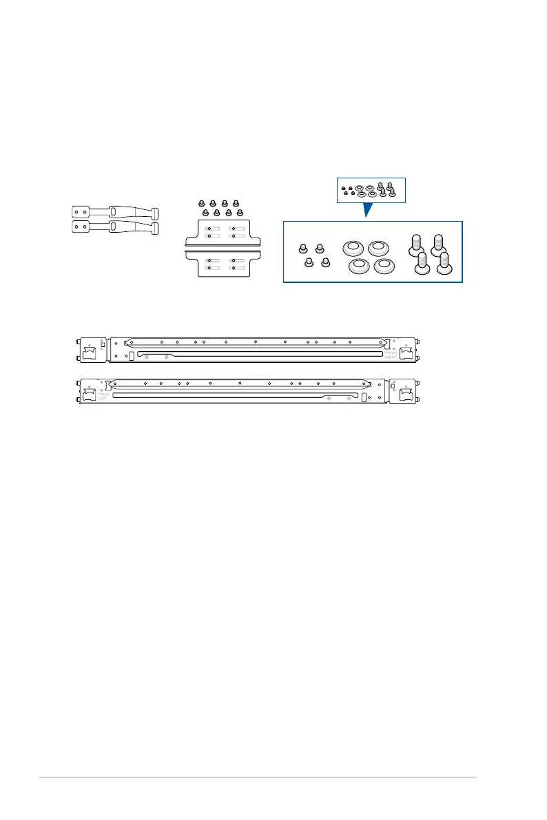 The tool-less rail kit package includes: