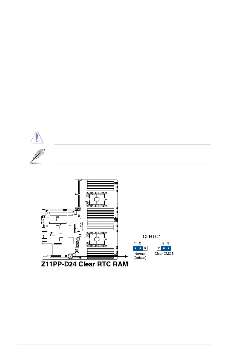 clear the CMOS RTC RAM data. After the CMOS clearance, reinstall the battery.