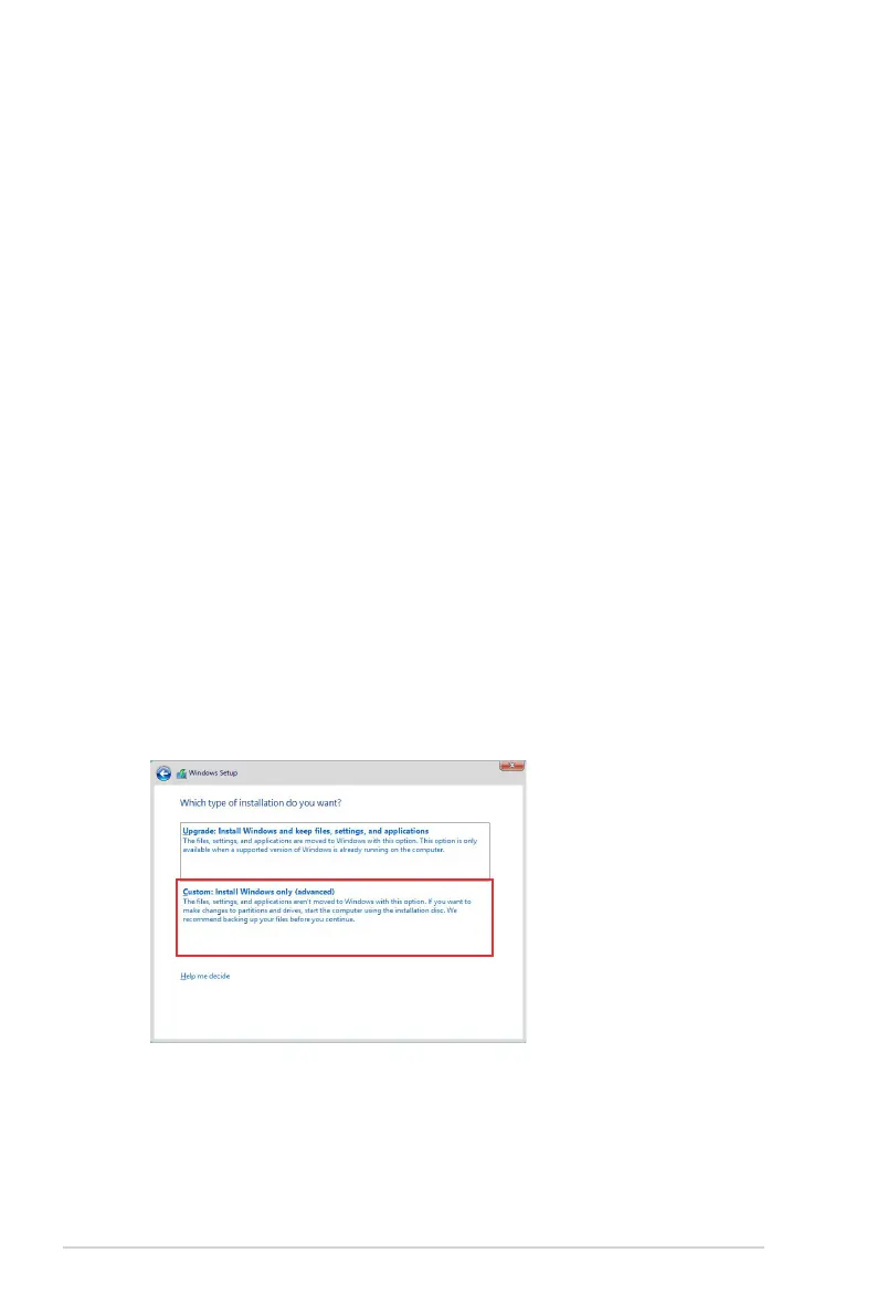 2. When prompted to choose a type of installation, click Custom: Install Windows only