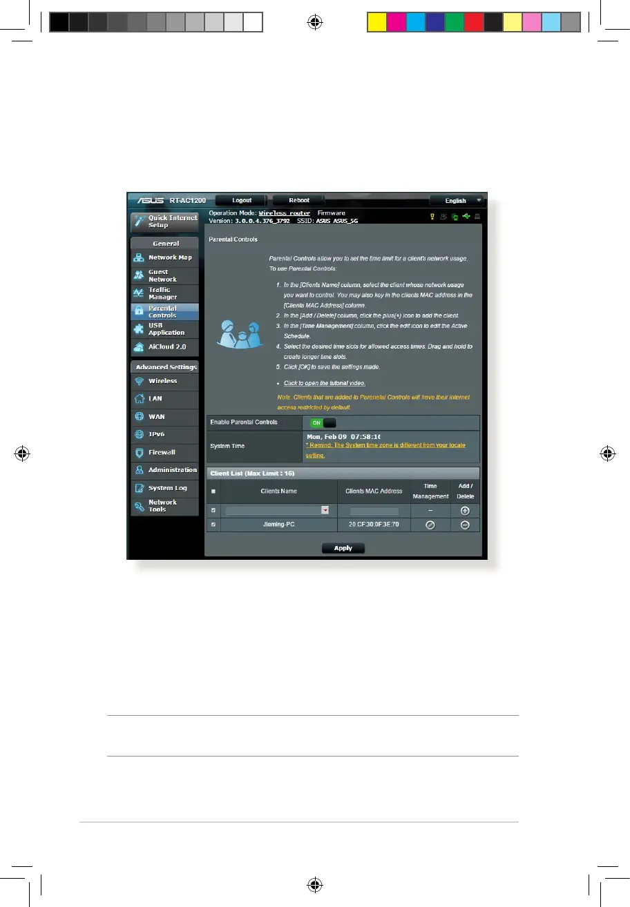 Parental Control allows you to control the Internet access time.