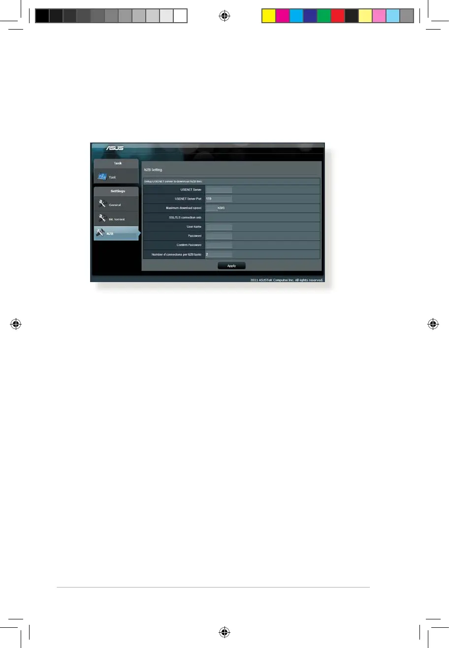 entering USENET settings, Apply.
