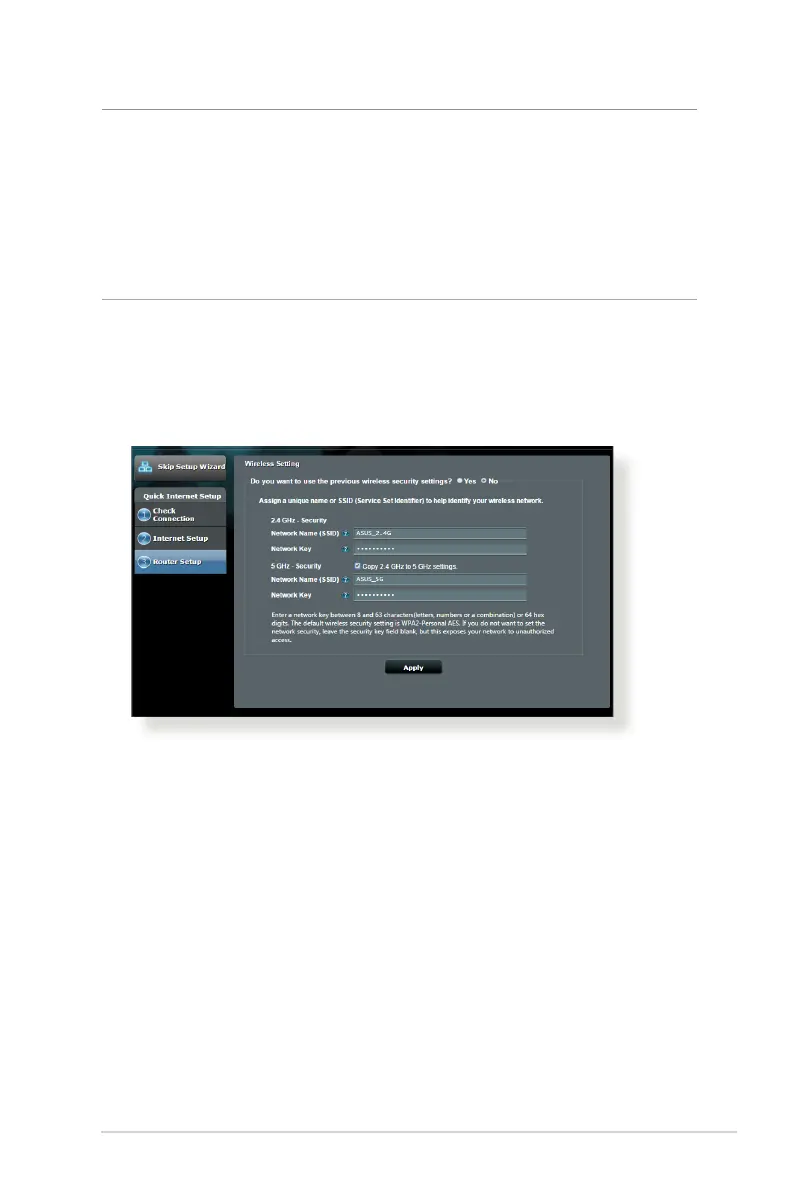 your 2.4GHz and 5 GHz wireless connection. Click Apply when