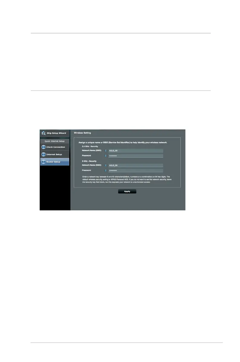 your 2.4GHz and 5 GHz wireless connection. Click Apply when