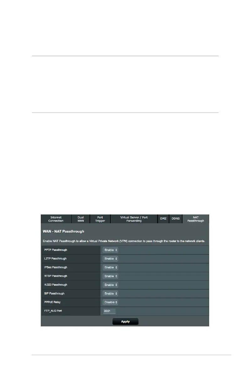 Advanced Settings > WAN > NAT Passthrough tab. When done,